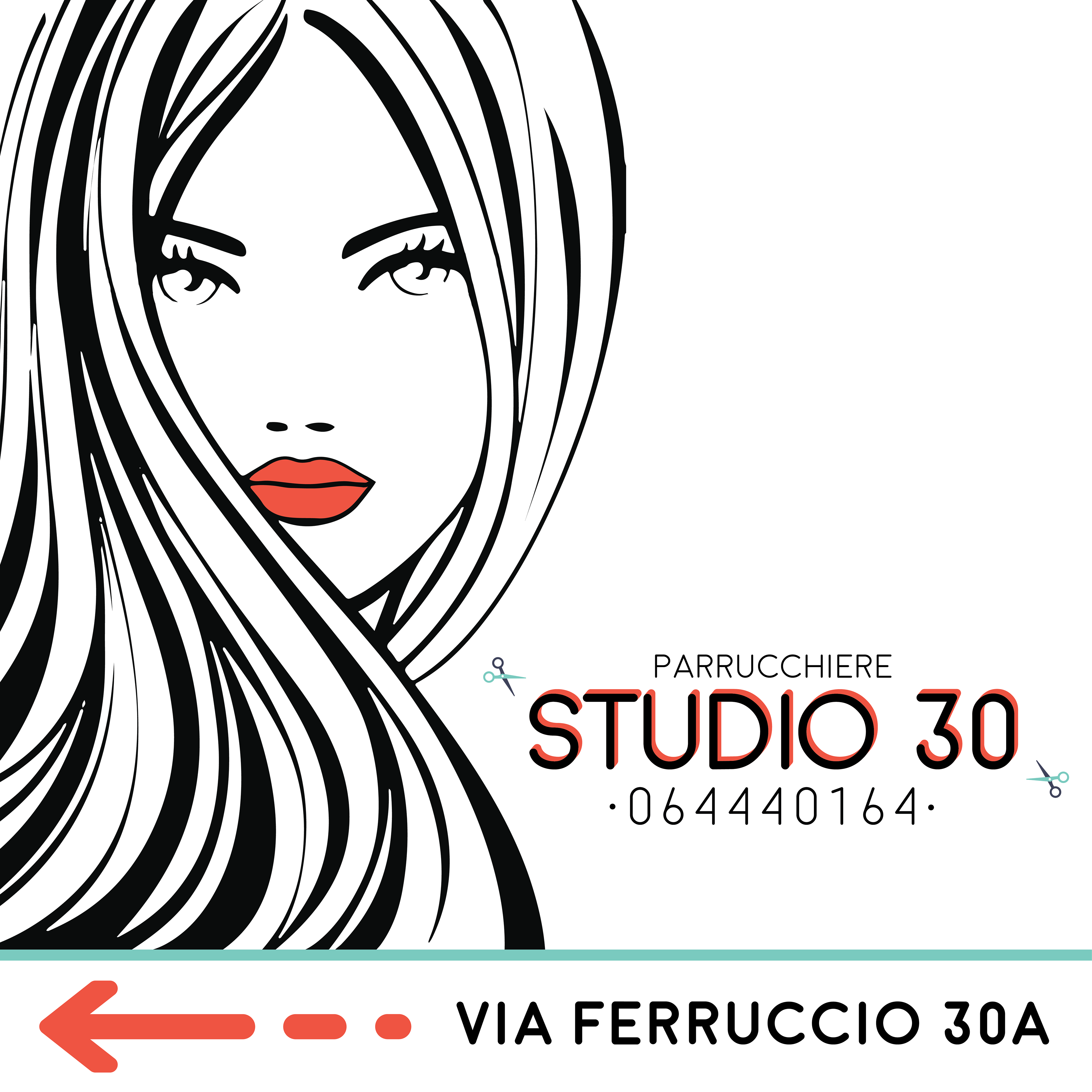A full brand identity for Studio 30, an hair salon, including a brand new logo, business cards, banners, full scale window sticker and a street sign advertisement